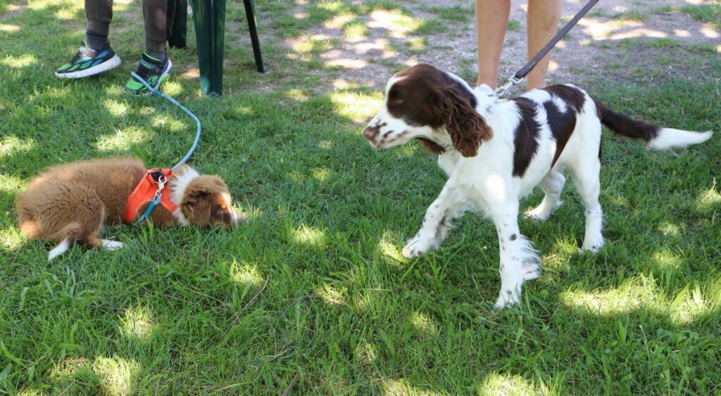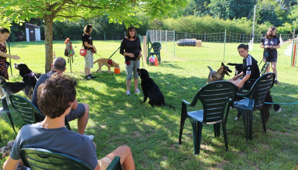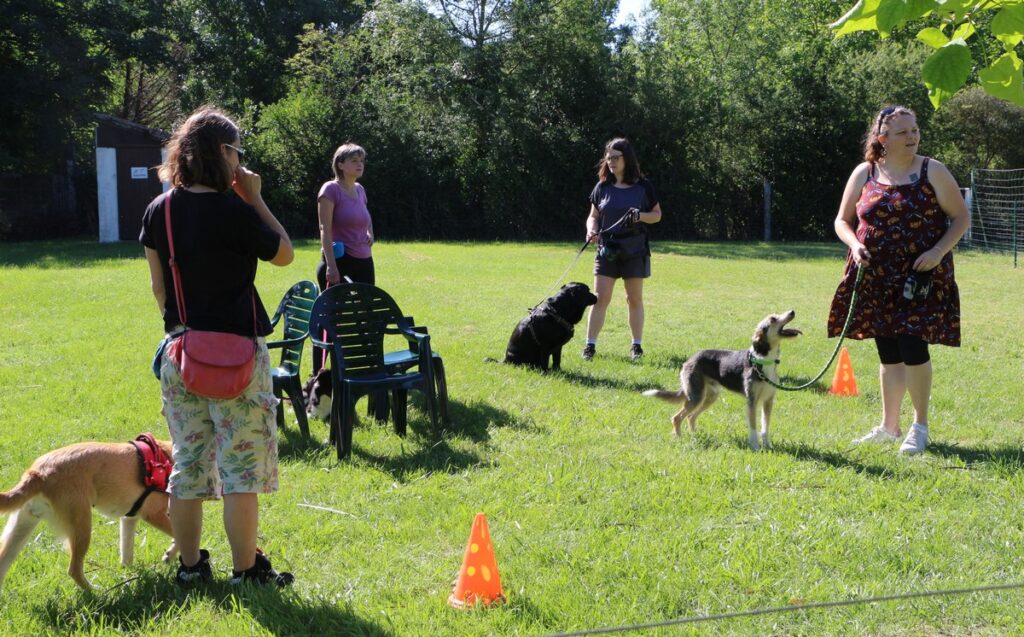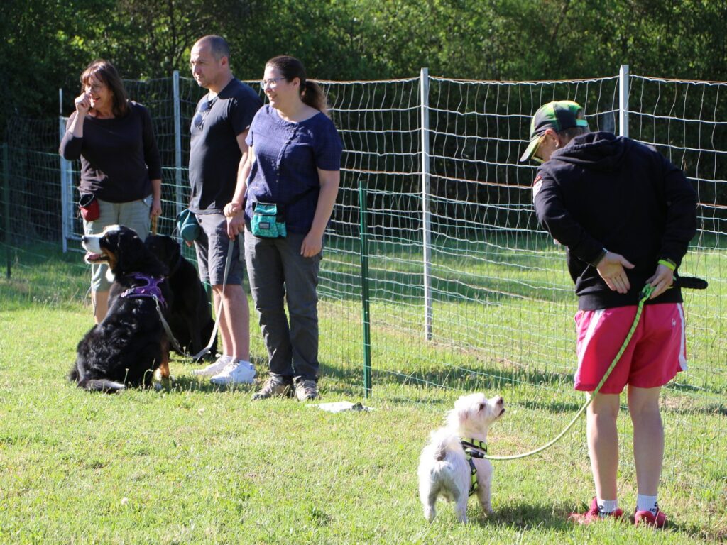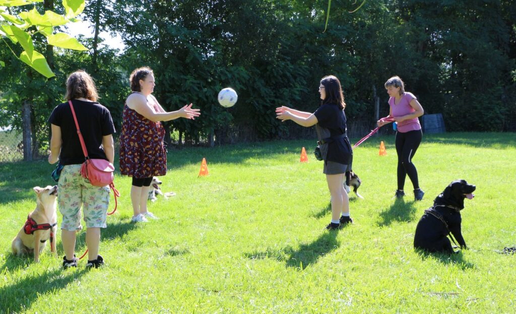 Les chiots « jouent » ensemble.Pendant que les grands s’amusentaux chaises musicales, à 1,2,3 soleilet au jeu du ballon.D’autres patientent pour l’agility,ou pour participer aux jeux.Heureusement, nous avionsdu très beau temps!