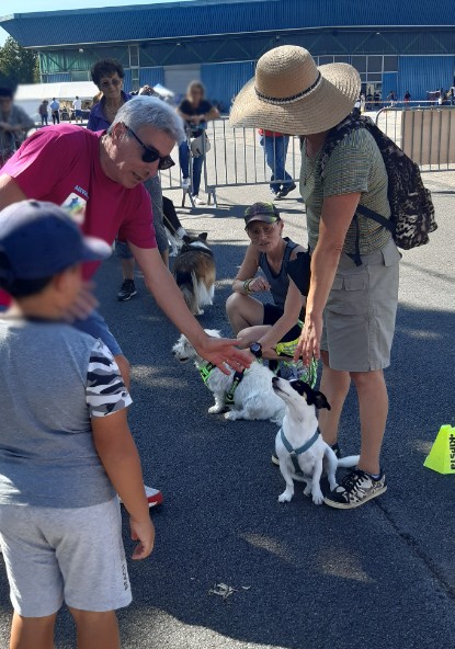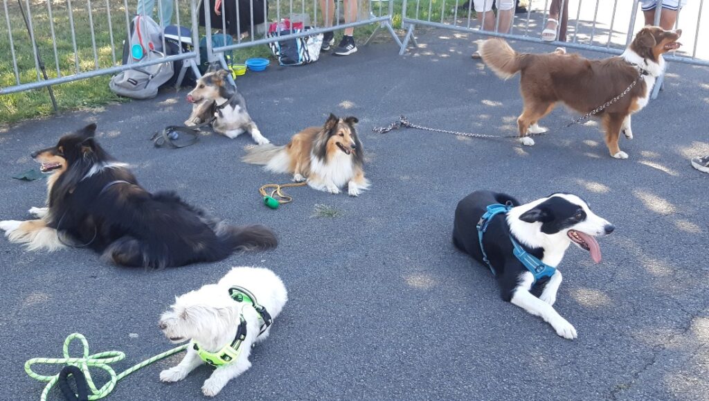 nous tenons un stand et faisons des démonstrations d’éducation et d’agility (en respectant nos amis à 4 pattes qui évoluent sur du goudron).