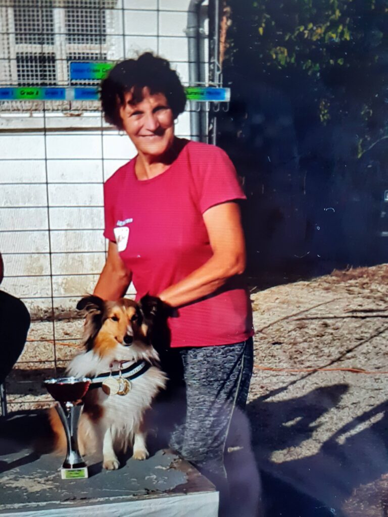 Avec Lina, sa chienne actuelle, elle concourt depuis 7 ans. Elles font de nombreux podiums et des « excellents ».