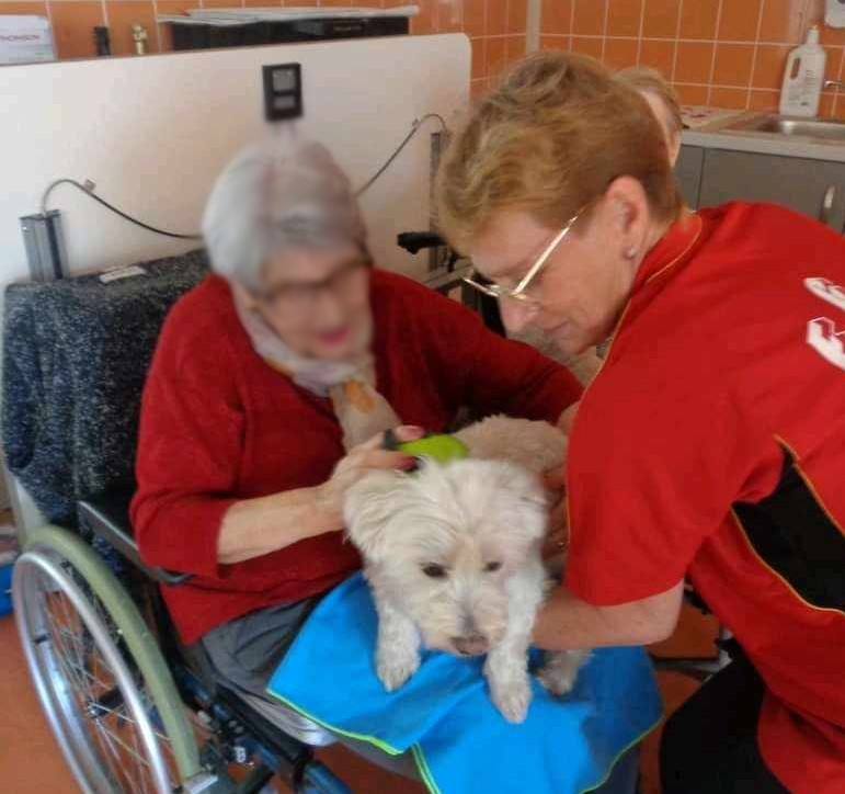 Les binômes maître-chien doivent passer un examen pour pouvoir devenir « chien visiteur ».